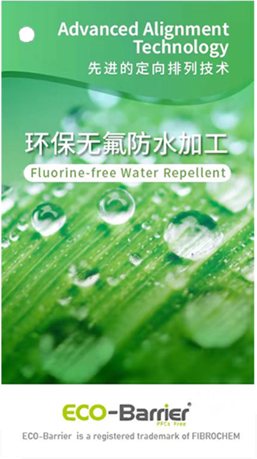 ECO-BARRIER基于高性能非F技术开发的防水产品,不含PFAS,含有绝大部分可再生资源。符合国标或者企标相关性能要求的,可以申请ECO-BARRIER吊牌