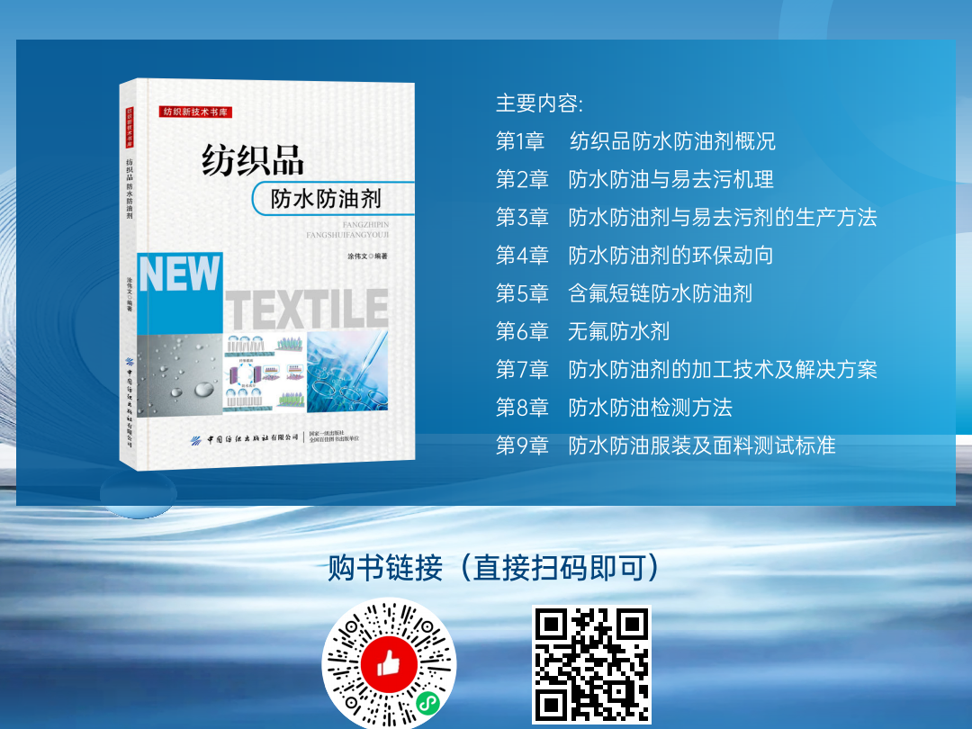 由??尚虏牧希ㄉ虾#┯邢薰敬词既送课拔南壬?,历经2年多时间撰写的技术专著-《纺织品防水防油剂》,于2023年2月由中国纺织出版社出版发行。该书是全球纺织行业第一本系统阐述防水防油剂相关知识的专业书籍...